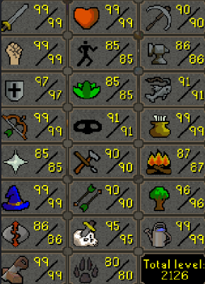 OSRS AccountsMain | 2120+ Total | 280+ QP | 99 Strength | 99 Mage | 95 Slayer | Avernic | E Void | Firecape | F Gloves | B Gloves | Skilling Outfits | Rare Pets